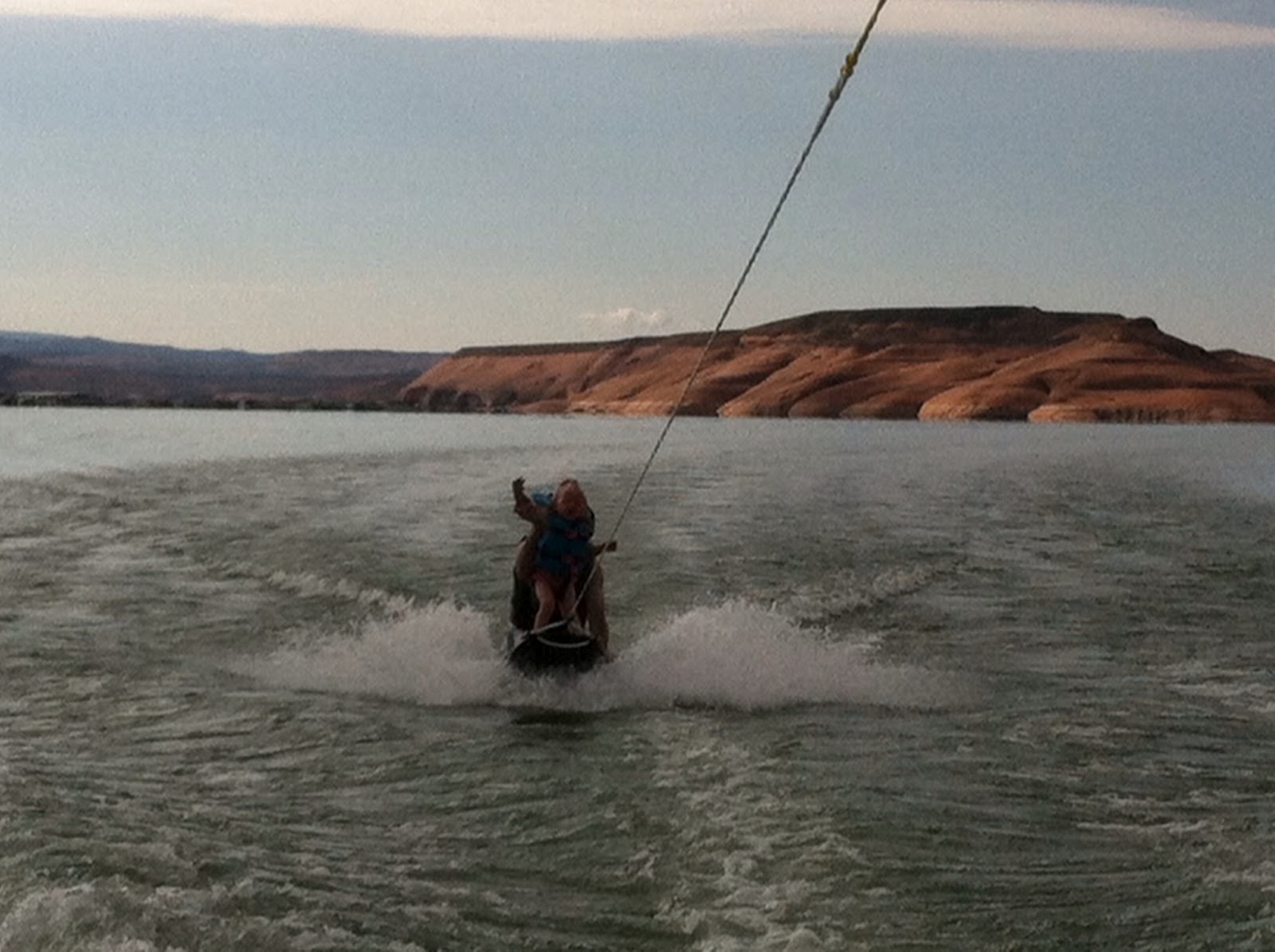We also got to do some Lake Powell sightseeing, riding wave runners, tubing, paddle boarding, laying in the sun, playing games, golfing on the beach, roasting marshmallows & hot dogs & watching movies.